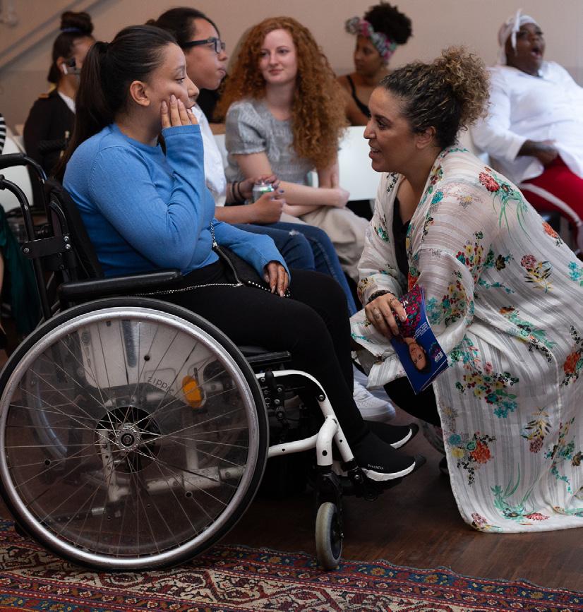 Ik vraag of ze wil dat ik noem dat ze in een rolstoel zit. ‘Als er het woord “ziekte” staat, dan denken mensen vaak: oh dat is een heel groot probleem. Maar ik denk, het is niet het belangrijkste. Natuurlijk, ik heb een spierziekte, maar ik ben veel meer dan dat. Het is jammer dat er alleen wordt gekeken naar hoe je “anders” bent en niet hoe je bent als persoon. Mensen denken vaak dat ik achterlijk ben en praten dan heel kinderachtig tegen me. Als ik dan zeg dat ze een normaal gesprek met me kunnen voeren schrikken ze soms. Ik heb al heel vaak gesolliciteerd op een baan. Als ik word uitgenodigd voor een gesprek, dan zie ik aan het gezicht al dat iemand denkt: oh God.