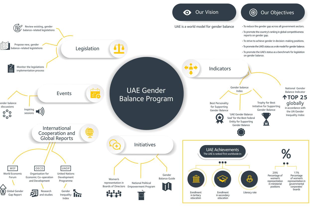 The UAE took bold steps to promote gender equality and women ' s empowerment, including in the political realm. The Gender Balance Council'sunwaveringcommitmenttopromoting gender equality has paved the way for women to hold influential positions, thus enhancing their powerinUAEpolitics