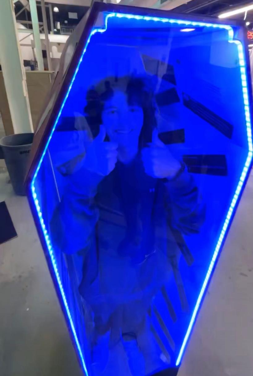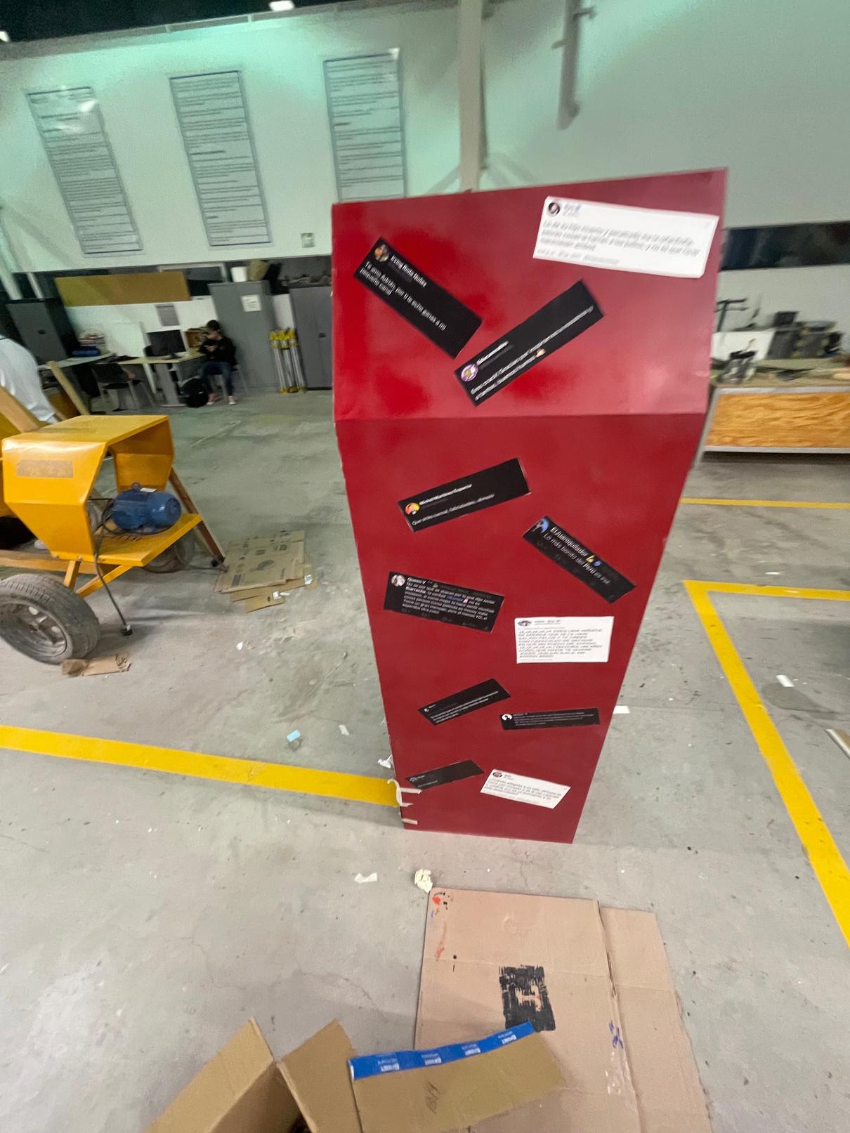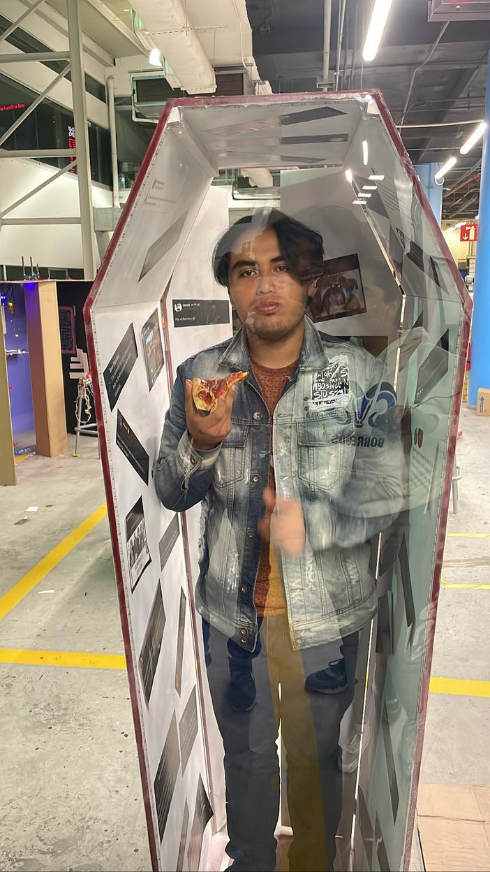 como equipo, fue una cabina, para que pudieras sentirte atrapado y sin salida. En esta cabina escucharías audio para ayudar a la experiencia, y también, habría alguna ayuda visual para que se entendiera el mensaje que queríamos transmitir.