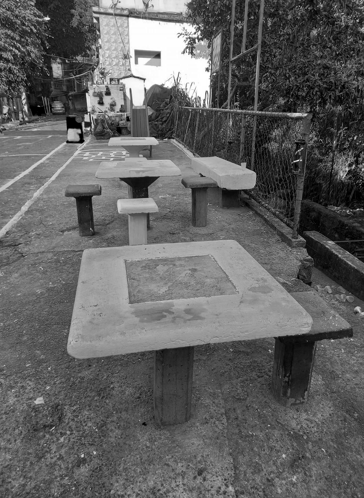 É num espaço como esse, construído para e com a comunidade, que vemos ideal o local de descanso e brincadeira, integrando crianças e adultos com conforto e segurança. As duas estruturas mantêm como elemento fundamental os desdobramentos
