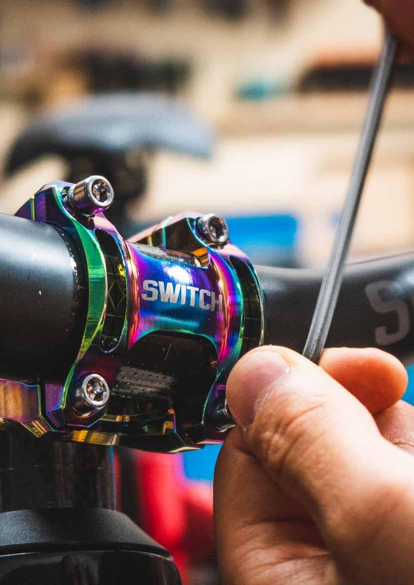 Fondé en 2016, Switch Components comprend actuellement 7 familles d'accessoires (pédales, guidons, portes-selles, multitools, guidagechaîne, poignées et inserts), mais les tests et la conception de nouveaux composants ne s'arrêtent jamais, alors attendez-vous à d'autres innovations.