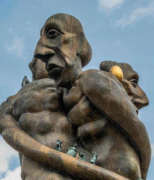 De tre figurer i Treenigheden er snoet sammen i en spiral for at vise H.C. Andersens drøm om at favne verden, men også en personlighed fuld af konflikter Dette portræt af H.C. Andersen er lige så komplekst som forfatteren selv, hvilket var hele pointen med Nørgaards arbejde.