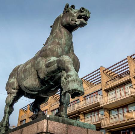 I hjertet af Randers står den 6,5 meter høje bronzeskulptur, Den jyske hingst, som blev skabt af billedhugger