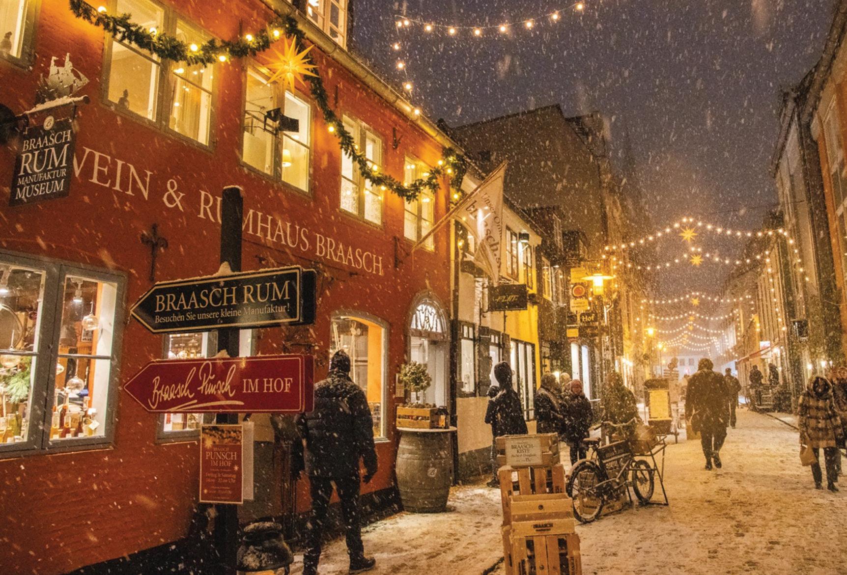 Der er skruet helt op for julestemningen langs havnefronten på Jungfernstieg, mens det bugner med gaveidéer hele vejen gennem shoppingarkaderne i Westfield og Europa Passage. På udkig efter noget ekstraordinært? Så tjek udvalget af secondhand design i Secondella, gør et vintageinteriørkup i Stilbruch eller sæt jagten ind på årets loppefund på lørdagsmarkedet Floh Schanze.