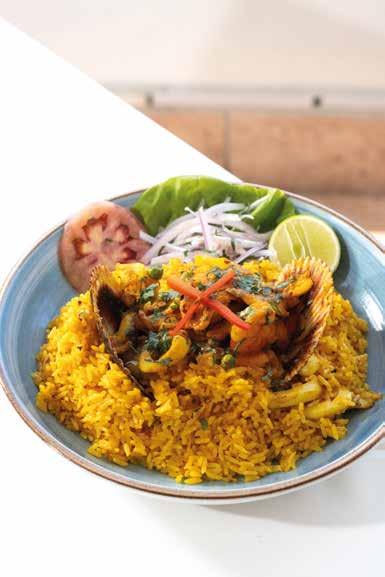 Arroz norteño con pulpo, calamar, langostinos, almeja y abanico.