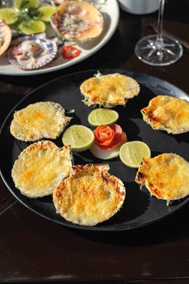 Conchitas gratinadas con queso parmesano. Gratinated scallops with parmesan cheese.