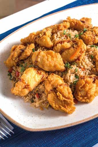 Chaufa peruano con chicharrón de pesca de temporada.
