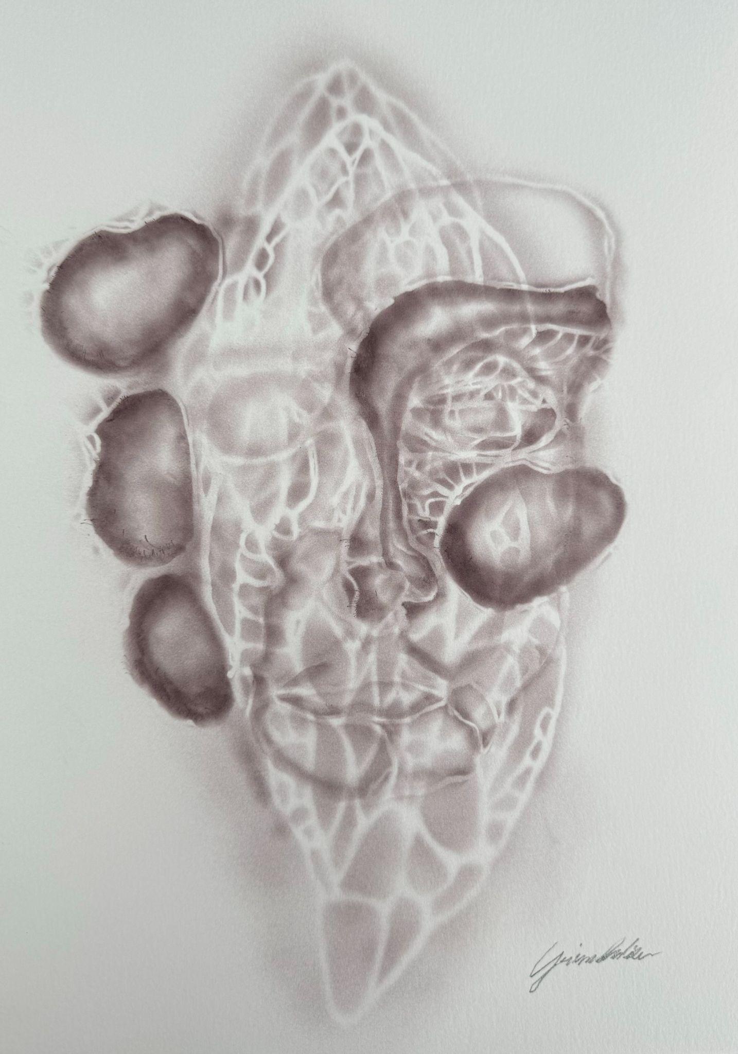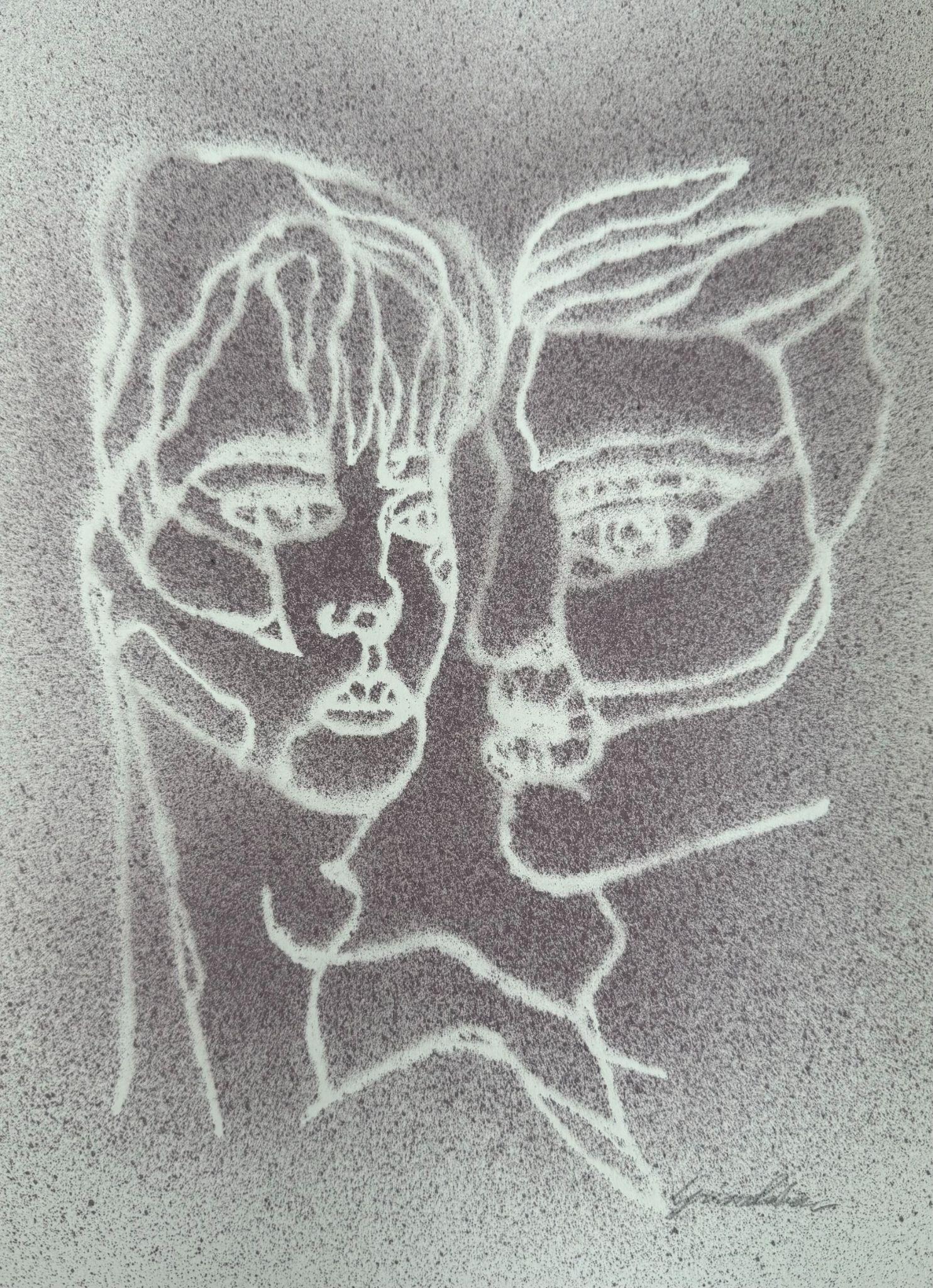 presented in the context of LEGAMI, in which the artist transfers the concept of the mask onto paper, are based on the same principles. Grimoldieu's investigation starts from the individual - representing the relationship of both "the ego", therefore of himself, and "the other" with their own past. This bond is enhancedbyastrongevolutionarywill, found in the blurred contours and in the concept of mask itself.