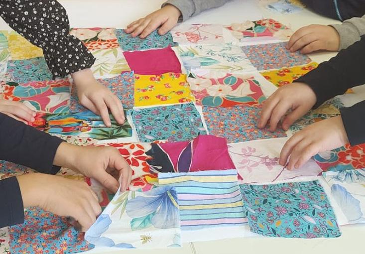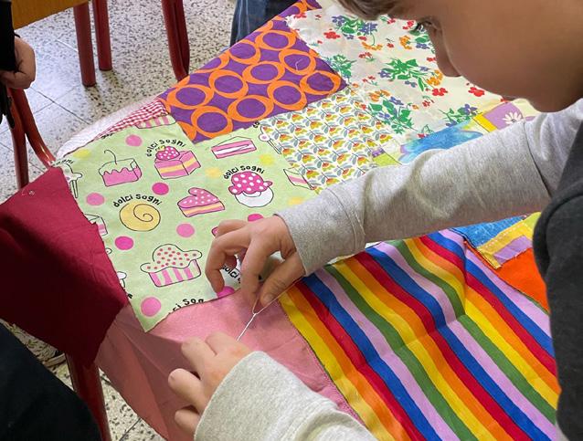 Eh sì, quando il sole ride nel cielo ma anche le nuvole lo dipingono, arriva il Tredesìn. La festa del quartiere piena di bancarelle di fiori che ne fanno, soprattutto, una festa di colori. E il Tredesìn arriva, sempre, ogni anno, anche nella nostra scuola. Un momento intenso, di partecipazione collettiva di tutte le classi. È il momento in cui l’arte si impossessa di spazi e tempi, a scuola, il momento in cui tutti sono all’opera per realizzare, ogni anno, qualcosa di unico e di bello da esporre, per esserci, per partecipare, per rinnovare l’unione e la condivisione con il nostro quartiere. È un momento di appartenenza, per tutti. Quest’anno abbiamo scelto di realizzare dei grandi fiori di stoffa con la tecnica patchwork. Abbiamo raccolto stoffe colorate per rendere l’idea della primavera in arrivo, le abbiamo tagliate e poi assemblate. È stato bello vedere i bambini accostare i colori,