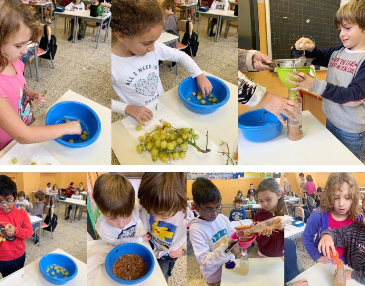 Dopo l’osservazione diretta, la mongolfiera ci ha riportato in classe per verificare l’esperimento, come dei veri scienziati, della trasformazione dell’uva in vino.