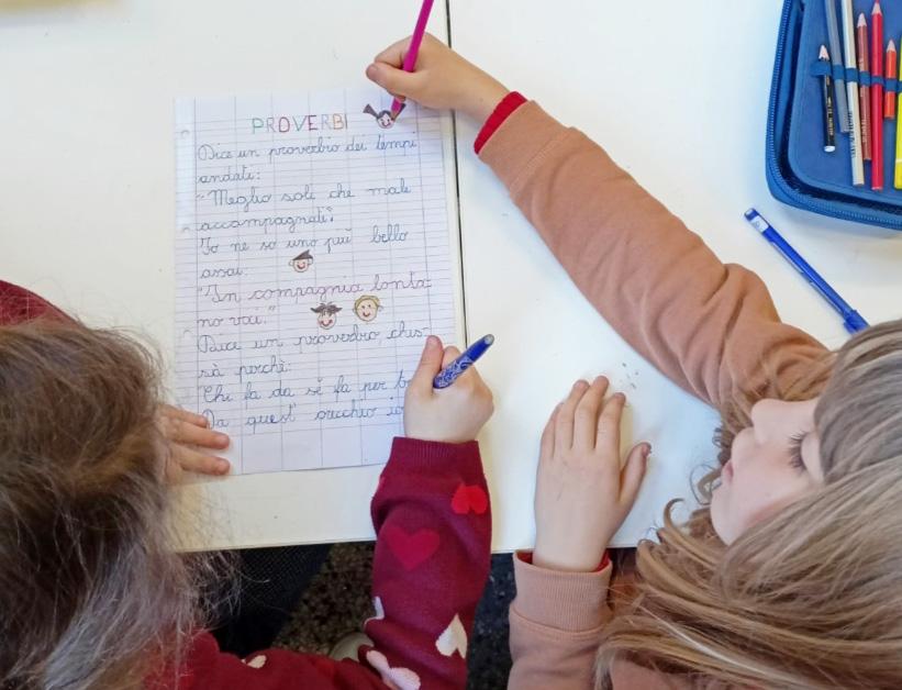 Anche Gianni Rodari, con la poesia Proverbi, ci ha fatto ragionare su quanto sia bello condividere con compagni e amici oggetti, idee, esperienze. Abbiamo imparato a scrivere in verticale, sperimentando un gioco di parole chiamato acrostico.