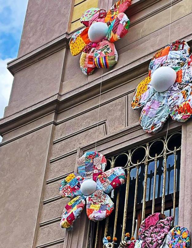 Abbiamo abbinato ai nostri enormi fiori di stoffa delle poesie giapponesi, gli haiku, dalla struttura molto semplice: tre versi e diciassette sillabe, secondo lo schema 5-7-5. Un modello breve-lungo-breve.