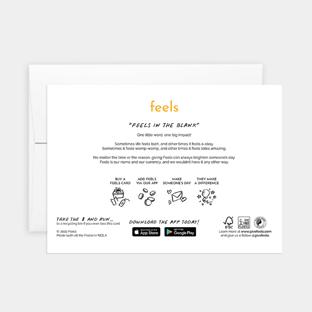 Buy a Feels card Order online, ship to yourself Make someone's day Give the card, with Feels, to someone special 1 3