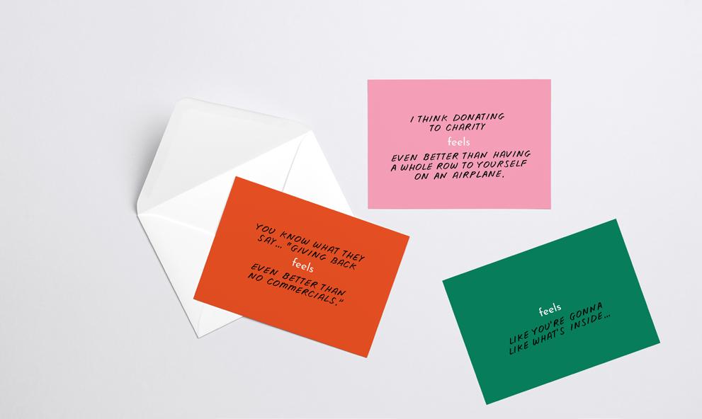 This card collection is full of cheeky phrases that emphasize the thing that Feels does best… connecting people with cash to give away!