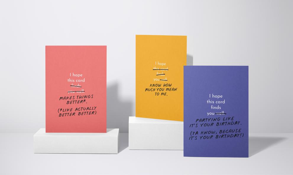 Shop by collection Cards Objects With A Smile 11 Passing Notes 15 I Hope This Card Finds You Well 18 Feels In The Blank 21 Tags All The Feels 25 Keep Your Friends Close 28 Wrapped In Ribbons 31 Call Out The Coin 34 Shop by Occasion Birthday 37 Congratulations 46 Love & Friendship 52 Motivation & Inspiration 59 Sympathy 67 Thank You 71 Just Because 76 Holidays 81 Pricing & terms 86