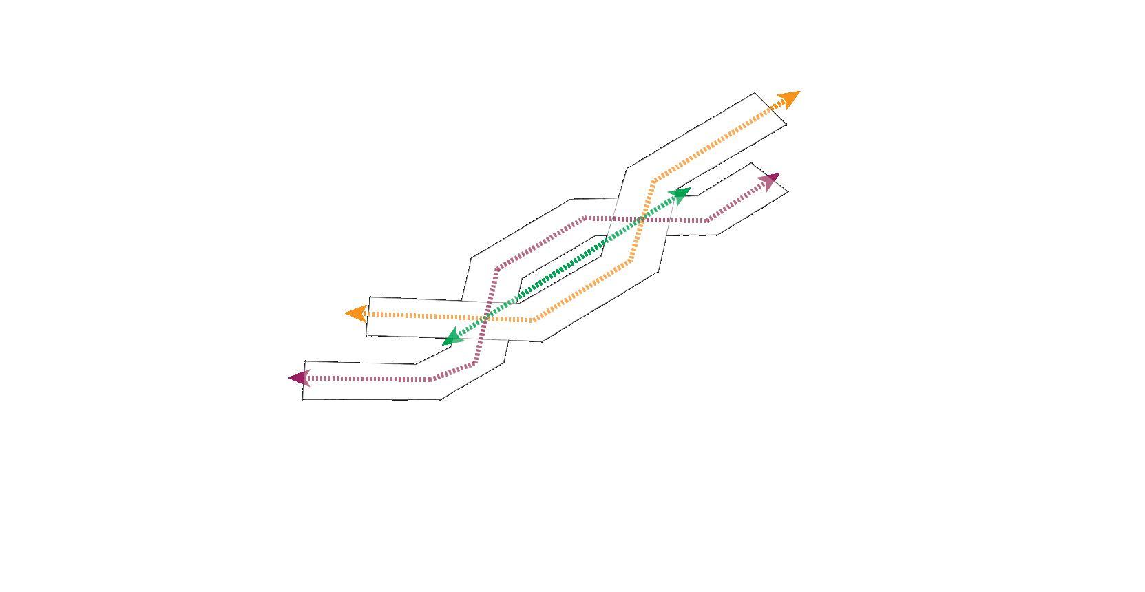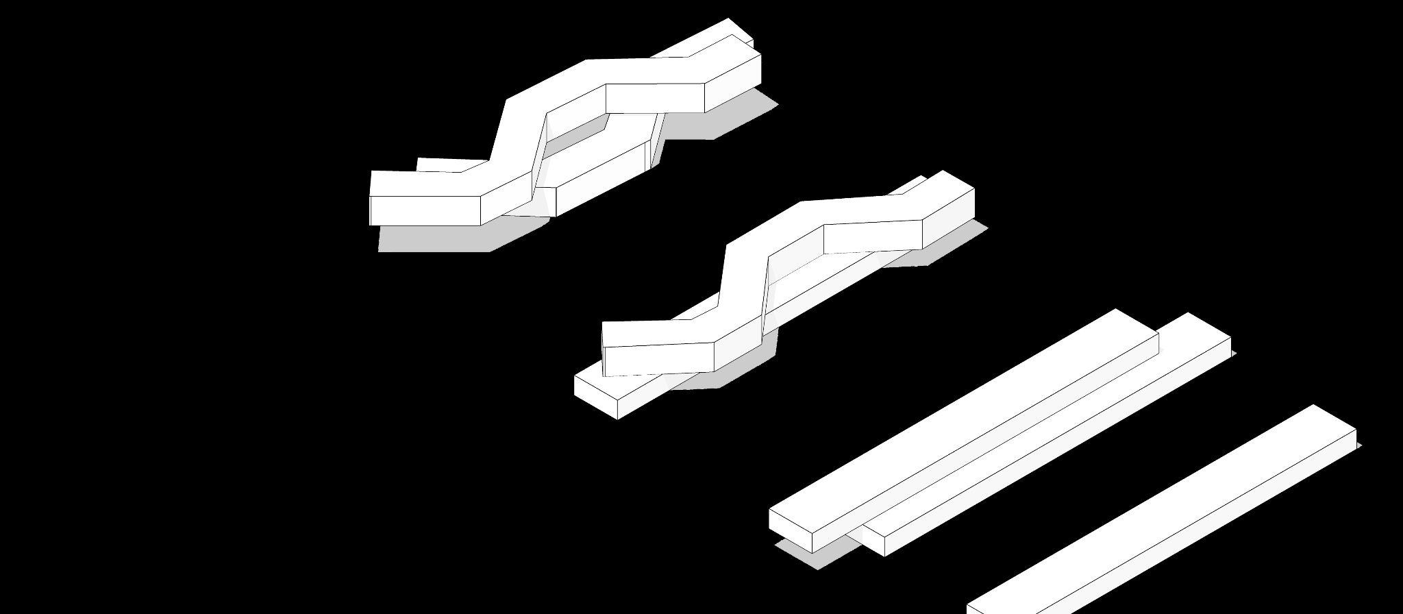 TO FURTHER EMPHASISE THE IDEA BEHIND ‘MERGE’ AS THE CONCEPT FOR THE PROJECT, THE USE OF REPETITION WAS EXPLORED WITHIN THE DESIGN PROCESS. THIS HAS THEN LED TO EXPERIMENTING WITH FOLDING AND TWISTING THE FORMS TO CONCLUDE WITH THE FINAL SHAPE.