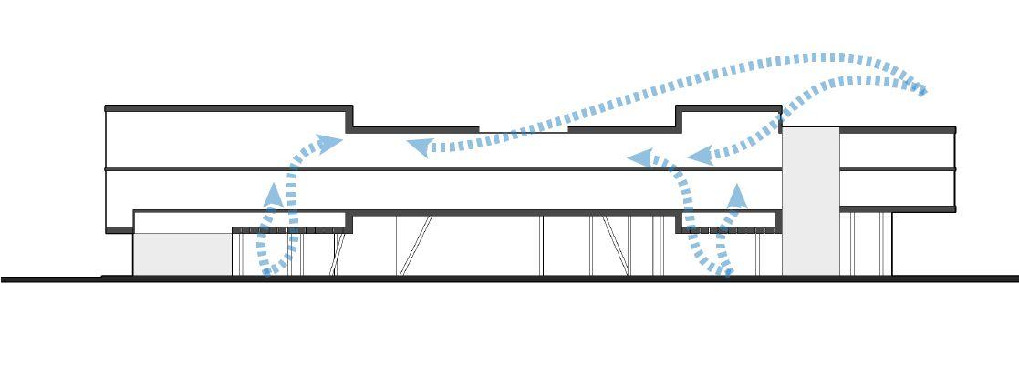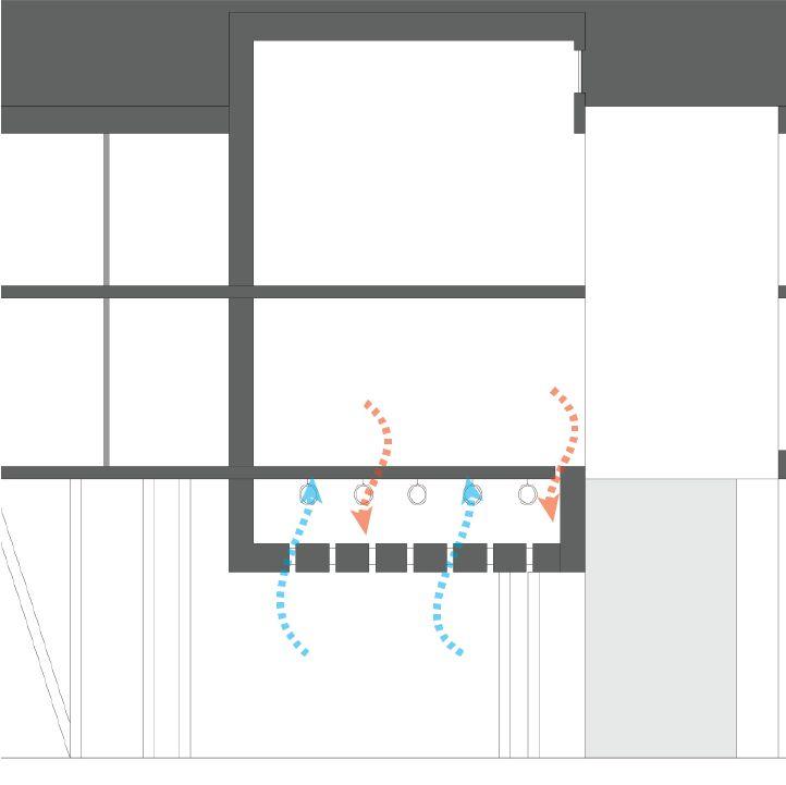 IMPLEMENTING DUCTS UNDERNEATH THE FLOOR TO IMPROVE QUALITY OF VENTILATION. THIS HELPS TO REGULATE THE NATURAL WINDS FROM THE SOUTH WEST, ESPECIALLY WHEN A LARGE SOURCE OF WATER IS QUITE ADJACENT.