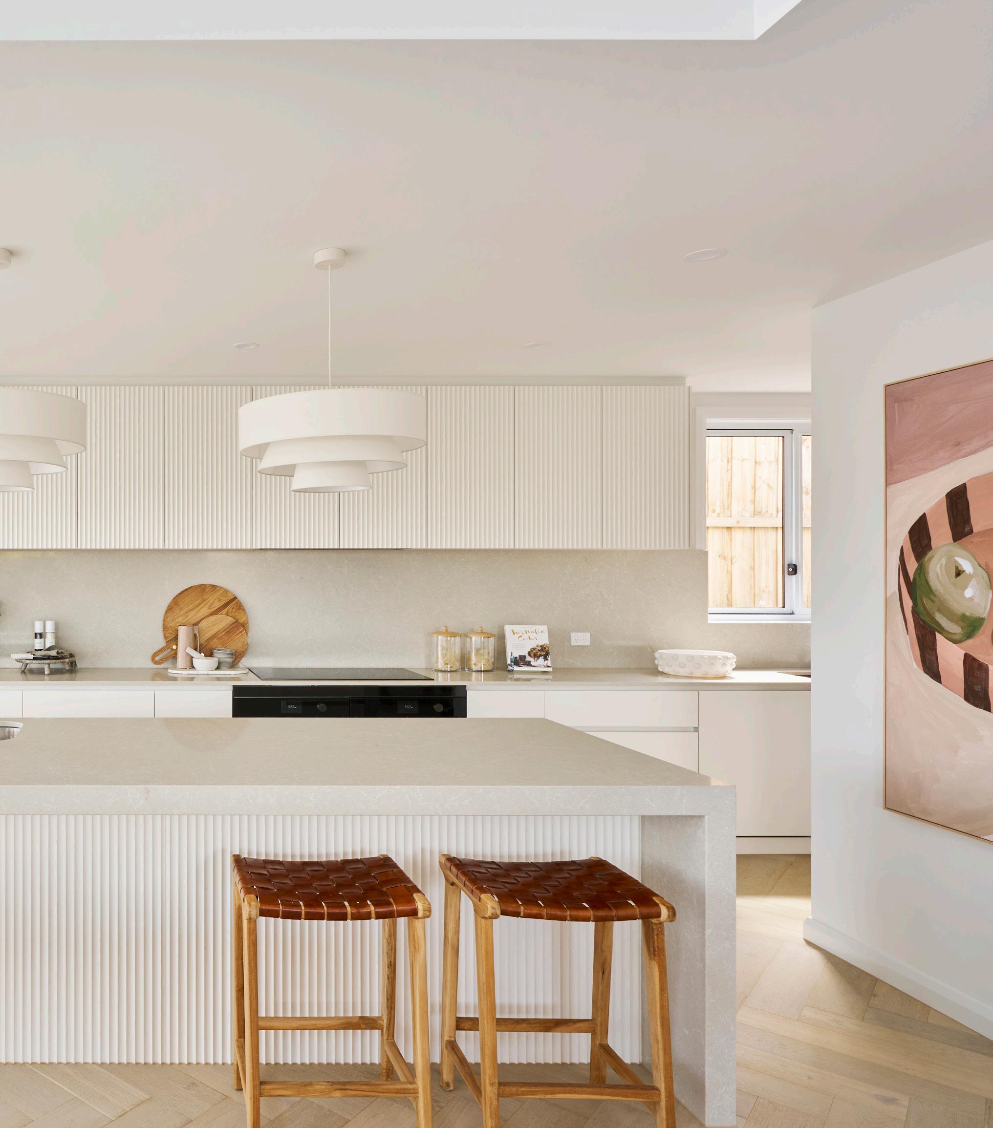 A designer staircase with large architectural voids offers plenty of natural light into the home providing spacious, relaxing interiors while maintaining a sense of privacy throughout the home. Overlooking the floor below, is a separate retreat area and balcony to relax and unwind, taking full advantage of elevated views.