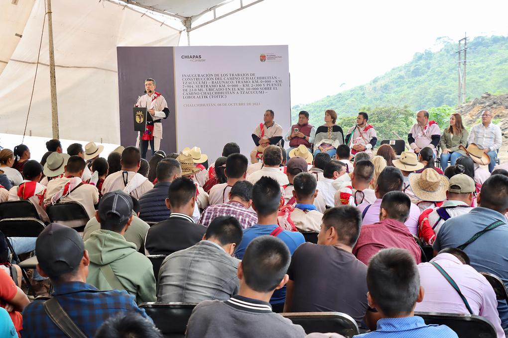 El gobernador Rutilio Escandón Cadenas inauguró la reconstrucción del camino de Tzacucum a Balunaco y el puente entre Tzacucum y Lobolaltik en Chalchihuitán, con el objetivo de mejorar el transporte de la población y sus productos, proporcionando eficiencia y seguridad en el traslado.