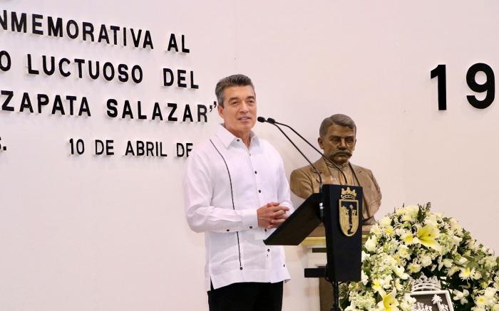 En el marco del 105 Aniversario Luctuoso del general Emiliano Zapata, en Chiapas se realizó una ceremonia conmemorativa en el Palacio de Gobierno, donde el gobernador Rutilio Escandón Cadenas destacó la importancia de los ideales de este ícono de la Revolución Mexicana, cuyo legado, dijo, es un baluarte para alcanzar el desarrollo y progreso del México actual, que direcciona sus acciones hacia la población más necesitada.