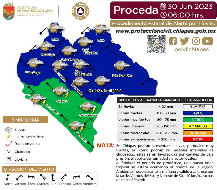 En otro momento, el gobernador dio a conocer que continuarán las lluvias en la entidad, con mayor intensidad en municipios de las regiones Soconusco, Istmo-Costa y Frailesca, por lo que insistió en el llamado a estar atentos a la información y las recomendaciones preventivas de protección civil, como alejarse de ríos, arroyos y montañas ante el peligro de inundaciones y deslaves.