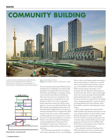 A downtown tower and nearby revital ization plan demonstrate Toronto Community Housing’s commitment to high-quality neighbourhood development.