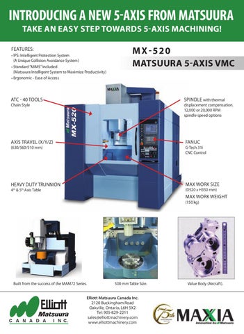 Elliott Matsuura Canada Inc. 2120 Buckingham road Oakville, Ontario, l6H 5x2 Tel: 905-829-2211 sales@elliottmachinery.com www.elliottmachinery.com