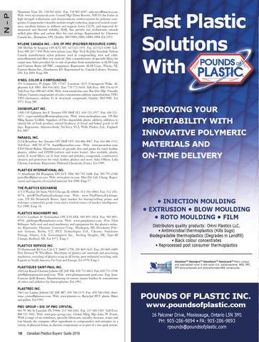 POUNDS OF PLASTIC INC. www.poundsofplastic.com 16 Falconer Drive, Mississauga, Ontario L5N 3M1 PH: 905-286-9894 • FA: 905-286-9893 rpounds@poundsofplastic.com