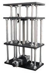Optimal Engineering Systems (OES) introduced its AT20-600 series of motorized vertical lift stages that offer a vertical lift of 600mm. Constructed of black-anodized aluminum alloy and steel shafting, the 600mm by 600mm stage table line weighs 45kg and is 610mm high in its lowered position. It center mounted lead screw has a transmission ratio of 663 microns per motor revolution. The AT20-600-01 model, driven by a two-phase stepper motor, features a repeatability of 5 microns, positional accuracy of 20 microns and has a knob on the motor for manual adjustment. The AT20-600-02 and AT20-600-03 are driven by a brushless DC servo motor and a DC servo motor, respectively. Both incorporate a quadrature incremental encoder. The AT20-600-04 is driven by a two-phase stepper motor with a quadrature incremental encoder.
