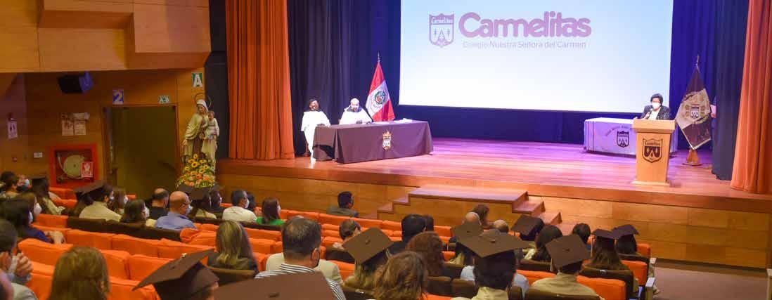 seguir adelante, usando la tecnología, aplicando una comunicación constante para lograr satisfactoriamente las competencias de este tiempo nuevo y duro que todos vivimos. Todos los días damos gracias a cada miembro de nuestra familia Carmelita, cada una de las personas que la conforman entregan su labor, su esfuerzo, su dedicación para formar seres misericordiosos, serviciales y buenos con su prójimo, como lo son ustedes, Promoción LVI. Continuemos nuestro caminar hacia Jesucristo, como familia Carmelita, y que nuestra madre y patrona, la Virgen del Carmelo, siga sosteniéndonos, guiándonos y protegiéndonos con su manto de eterno amor.
