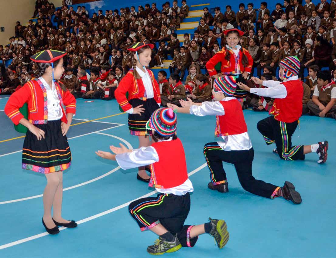 Fiestas Patrias: Nos emocionamos cuando cantamos el Himno Nacional en el Aniversario del Perú, y festejamos de que somos hijos de un glorioso país. En nuestro colegio realizamos actuaciones en homenaje al Perú en donde bailamos y cantamos con todo el corazón.