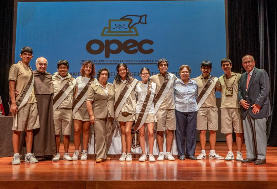 Este año llevamos a cabo con mucho compromiso las elecciones para elegir al Concejo Estudiantil en Secundaria. Para realizar con orden y rigurosidad las elecciones, primero se eligió a los integrantes de la Oficina de Procesos Electorales Carmelitas (OPEC) y, luego de un debate entre candidatos, se procedió a realizar las elecciones. El resultado dio como ganadores a la lista conformada por: Mia Delgado Valencia, 5to. año. Presidente; Joaquín Prado Zamora, 4to. año. Vicepresidente; Santiago Lindo Gutiérrez, 5to. año. Regidor de Derechos del Niño, Niña y Adolescente; Isabella Cerrutti Lukac, 4to. año. Regidora de Educación, Cultura, Recreación y Deporte; Matías Denegri Maúrtua, 4to. año. Regidor de Comunicación y Tecnología de la Información; Yukio Kanashiro Oliveros, 3er. año. Regidor de Emprendimiento y Actividades Productivas; Ana Paula García Pradel, 3er. año. Regidora de Salud, Medio Ambiente y Defensa Civil; y Thiago Seyfarth Pérez-Gamio, 3er. año. Regidor de Ética y Mística. Igualmente, felicitamos a los delegados