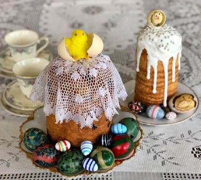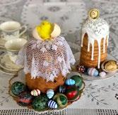 Cut one Koolich at a time. Remove decorations. Lay Koolich onto its side and start slicing the cake from the bottom up to the top. Koolich is good served spread with butter or jam. It is particularly delicious served in the traditional way, with a slice or a spread of Paska. If your Paska is firm, slice it. Otherwise, you can spread it onto a piece of Koolich.