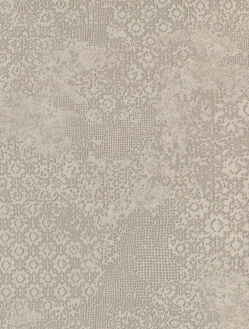 The pattern takes shape through a harmonious interplay of embossed details and fine engravings, reminiscent of antique lace and exquisite textile craftsmanship, reinterpreted through a contemporary lens.