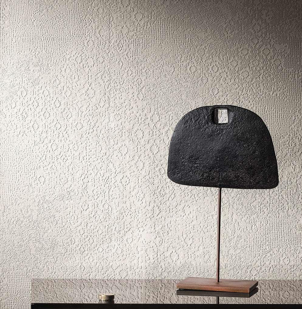 His sculptural approach is now reinterpreted by Glamora in a contemporary way, giving rise to a wallcovering that evokes the aesthetic of handcrafted surface treatments.