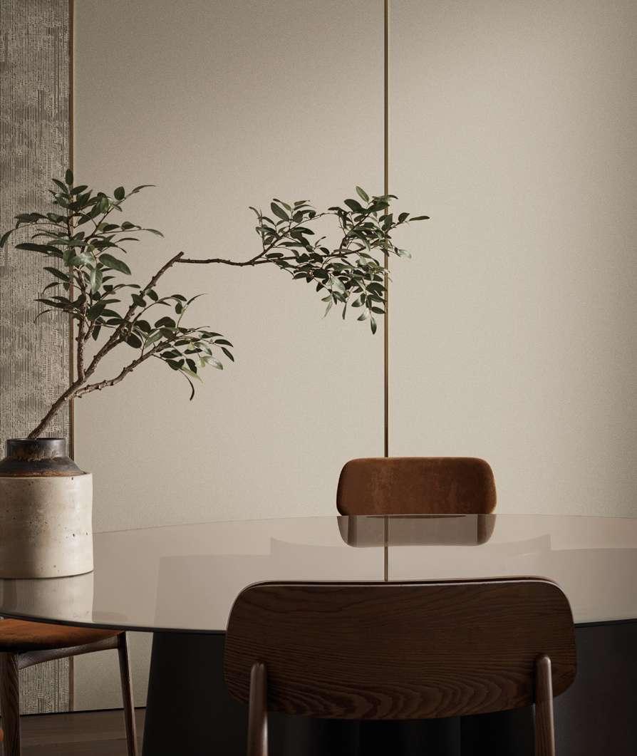 Suitable for vertical indoor surfaces in residential, commercial, and hospitality settings, the wallcovering seamlessly integrates into both classic and contemporary spaces, from private residences to business and luxury environments. With its elegant textures, it is ideal for creating intimate atmospheres, such as bedrooms, or enhancing shared spaces like living rooms and lounges. Applied in workplaces or public venues – restaurants, hotels, showrooms, and conference rooms – it brings a sophisticated and luminous aesthetic to vertical surfaces.