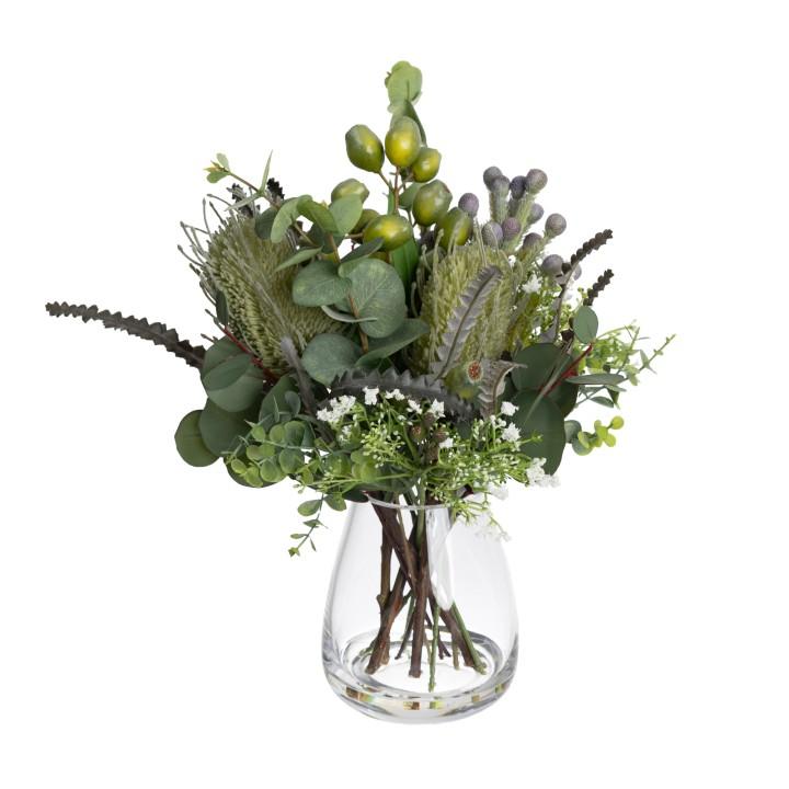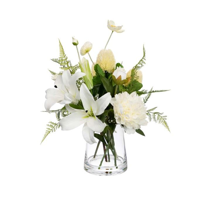 30CM PEONY & BANKSIA MIXED ARRANGEMENT