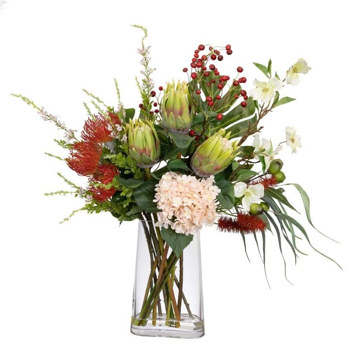 90CM WARATAH & PROTEA MIXED FLAT BACK ARRANGEMENT