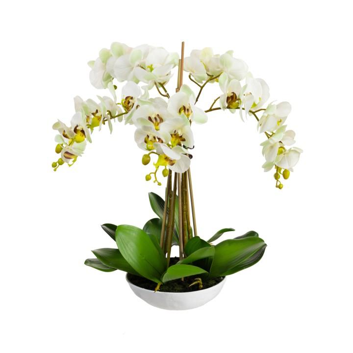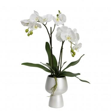70CM ORCHID IN WHITE PEDESTAL VASE