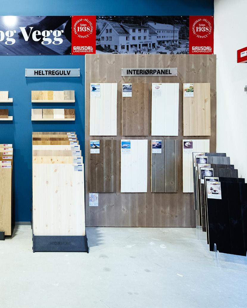 Et naturlig materialvalg, innvendig panel av heltre furu i ulike profiler og farger finner du utstilt hos oss.