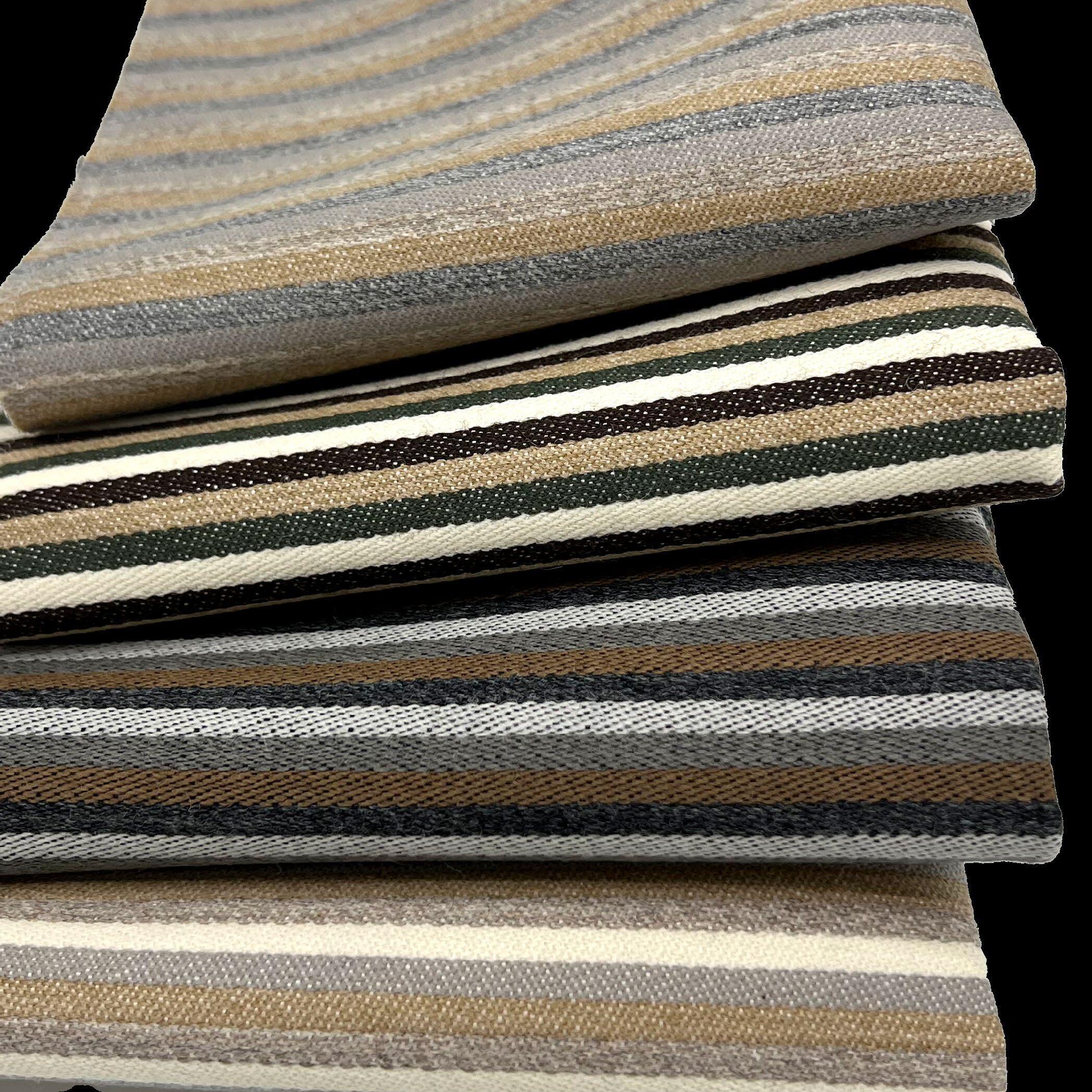 OSTIA is a beautifully situated seaside neighborhood near the ancient port of Rome and is now a seaside resort where many Romans spend their summer holidays. Very understated and contemporary, yet elegant, this beautifully-scaled and wonderfullycolored horizontal stripe pays homage to delightful Ostia. Introducing new colorway Piazza.