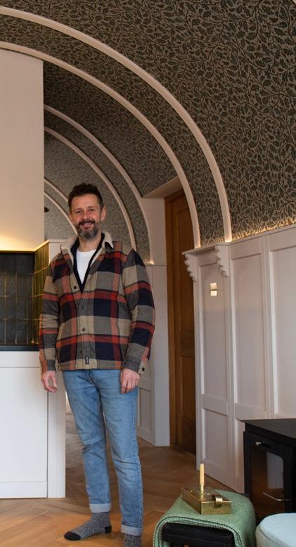 On his quest to create a one-of-a-kind Arts-and-Craftsinspired caravan in the Lake District, George and Max included many of the movement’s major design elements, from wonderful wood panelling, to stained-glass windows, plus George’s personally patterned textile design to cover his coveted barrel-vaulted ceiling, creating a cosy feel to the caravan. George’s build was also influenced by his visit to reportedly the UK’s most authentic example of a Arts-andCrafts home, located in London’s Hammersmith, which was owned by Arts and Crafts’ greatest designer, William Morris’ good friend, typographer and antiquary Sir Emery Walker. Bursting at the seams with nature-influenced Morris prints, too, George was beyond inspired, taking away fabrics, wallpaper and pattern inspo aplenty.