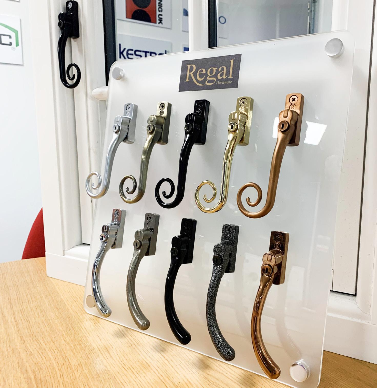 Regal Hardware is a complete suite of fully coordinated furniture, so fabricators can reliably source a full set of monkey tail or pear drop window handles and butt hinges, pegs and stays, as well as door handles from a single source in Window Ware, who also provide a range of eye-catching brochures, fliers, high-res imagery and pop-up display stands to support promotion.