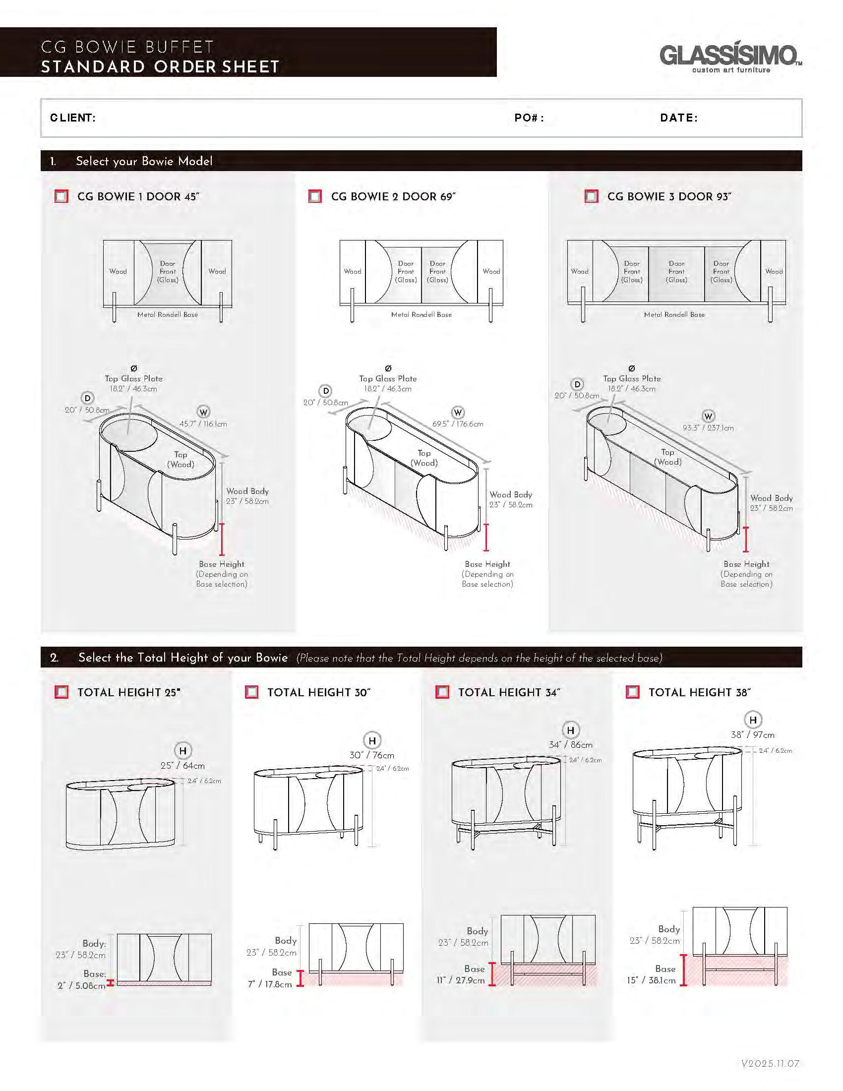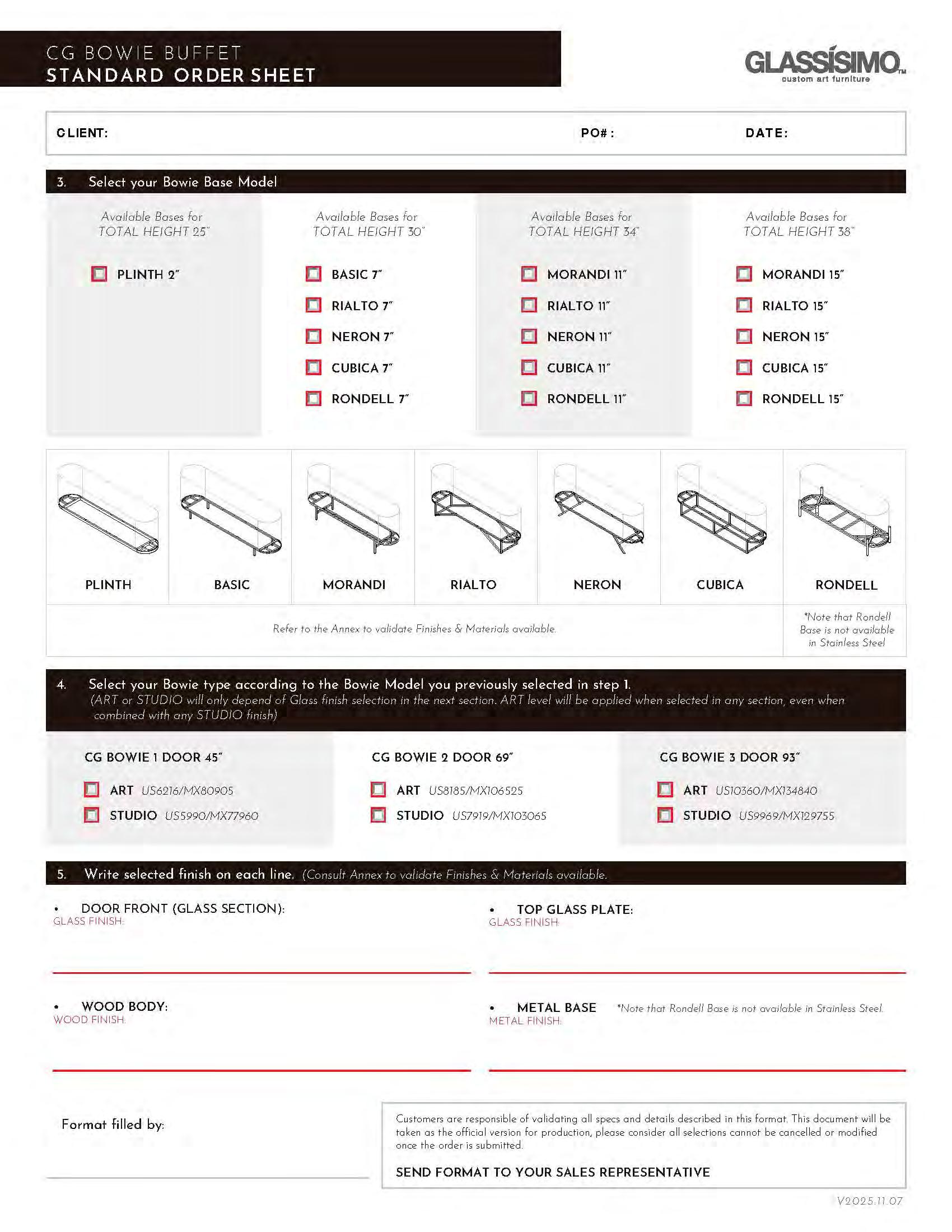Complete the Order Sheet by defining the selected finishes and specifications for each product.
