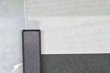 Anodized Aluminum support rails for bottom glass edge with plastic bumpers.