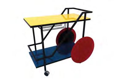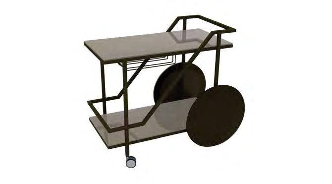 6mm extraclear tempered glass. Metal frame. Plastic casters. Wine glass holder. Size: