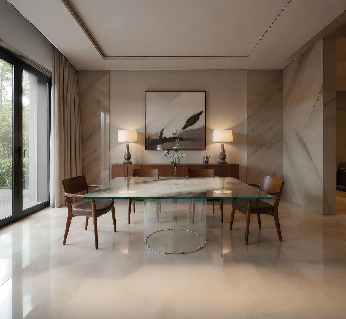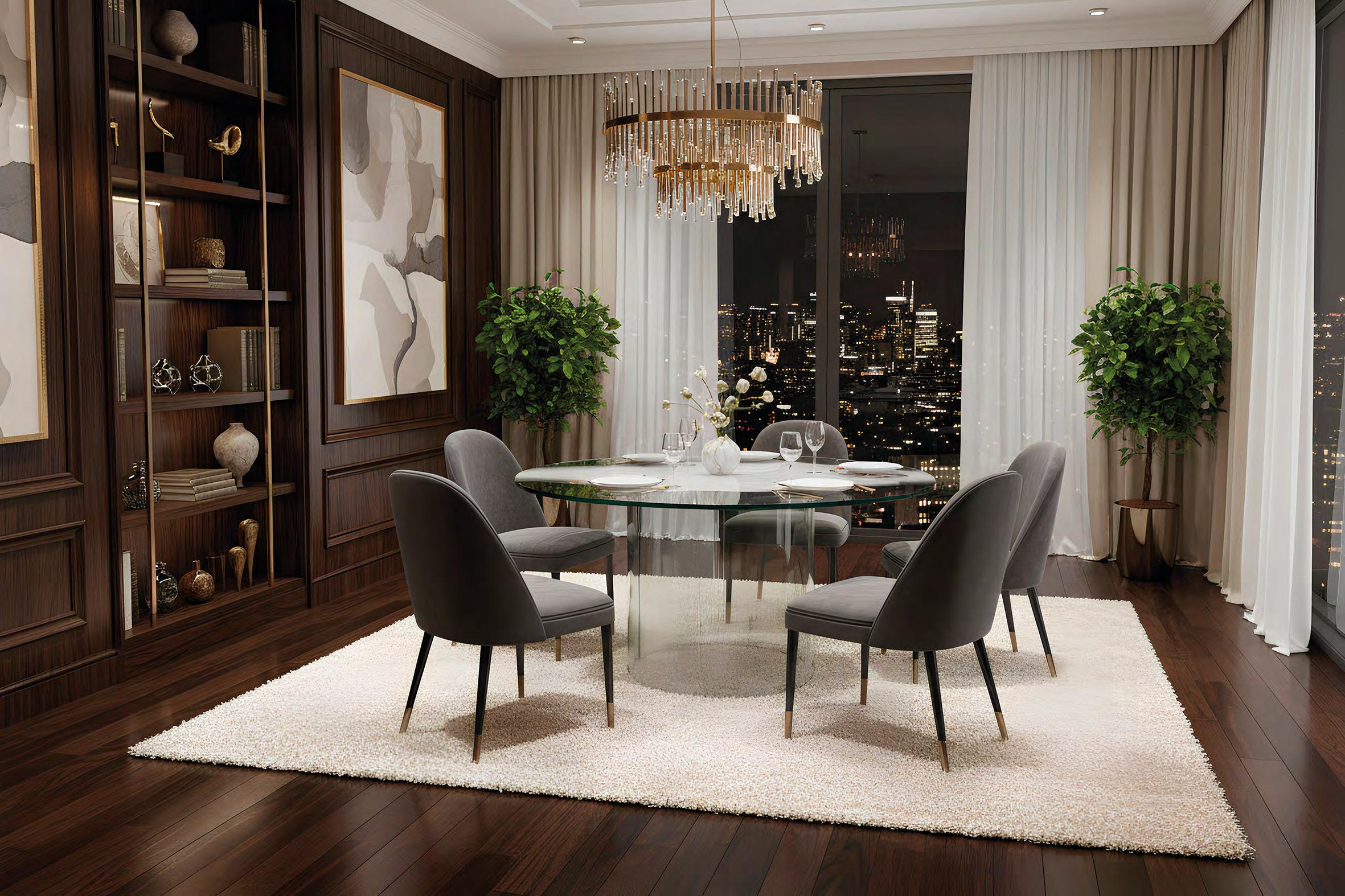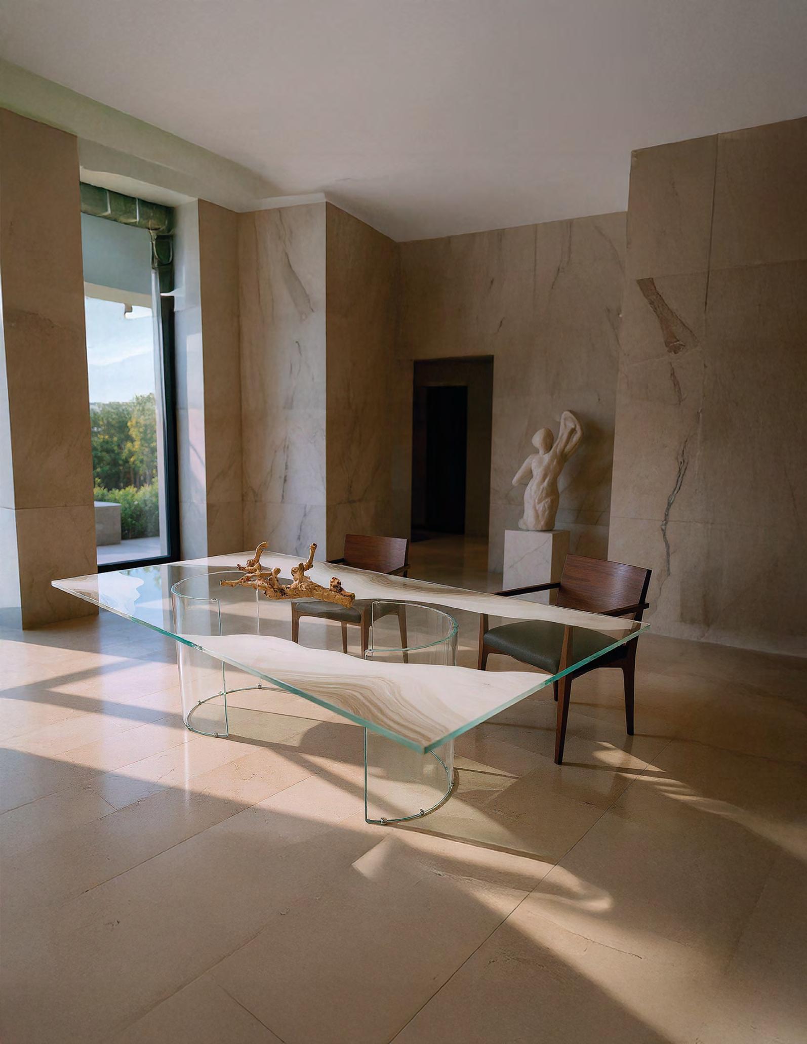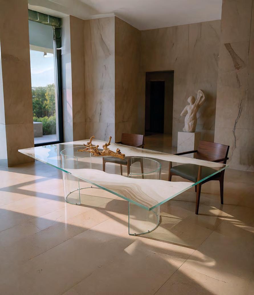 Round Glass Top (48”/54“Ø) 3/4” (19mm) extraclear glass. *Note: The thickness of the glass might affect the perception of some finishes (mostly light colors)