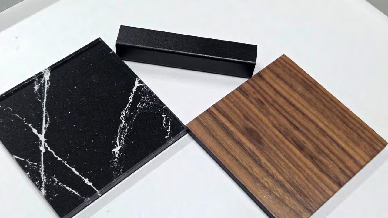 4mm extraclear tempered glass Outside; Lacquered wood finish (with veneer/wood-texture) Interiors; Flat lacquer (No veneer) Doors with Soft-Close System