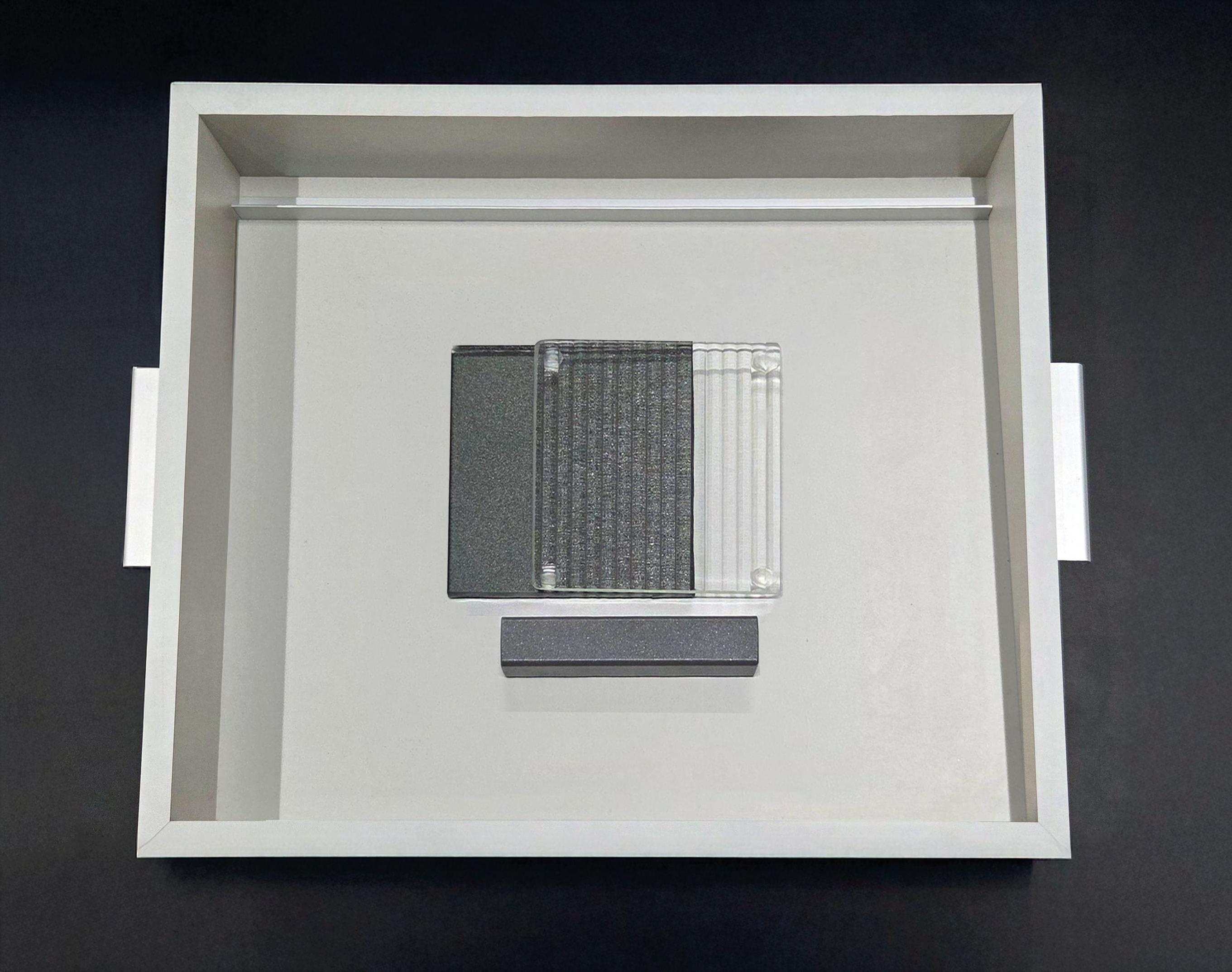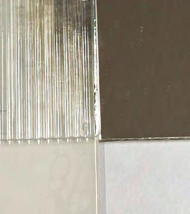 C Bases: 15mm extraclear bent glass. Plastic bumpers for floor and top.