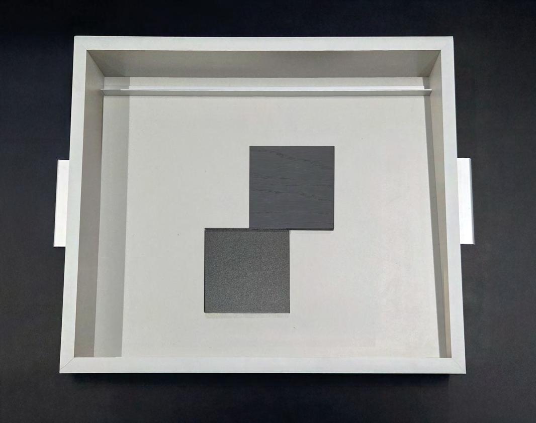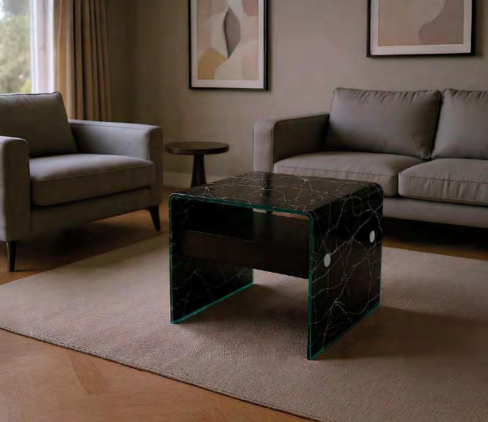 Square Glass Top 3/4” (19mm) extraclear glass. *Note: The thickness of the glass might affect the perception of some finishes (mostly light colors)